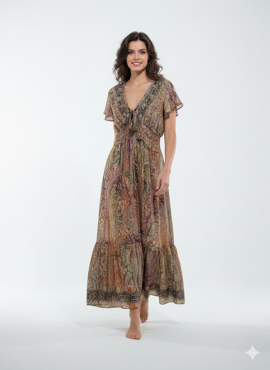 VESTIDO LARGO BOHEMIO BAHIA DORADA