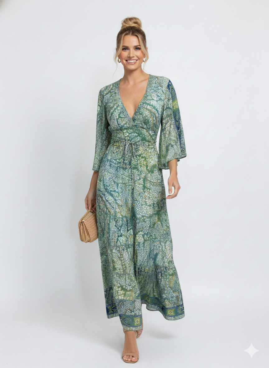 ¿Cansada de vestidos que pasan de moda en una temporada? Este diseño bohemio fusiona lo clásico con lo moderno: cortes fluidos, estampados exclusivos y detalles artesanales que nunca pierden vigencia. Te verás impecable en una boda, una cena romántica o un brunch con amigas.